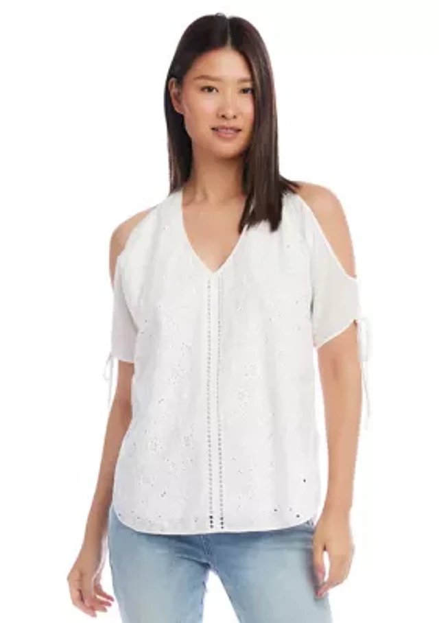 Petite Embroidered Cold Shoulder Top