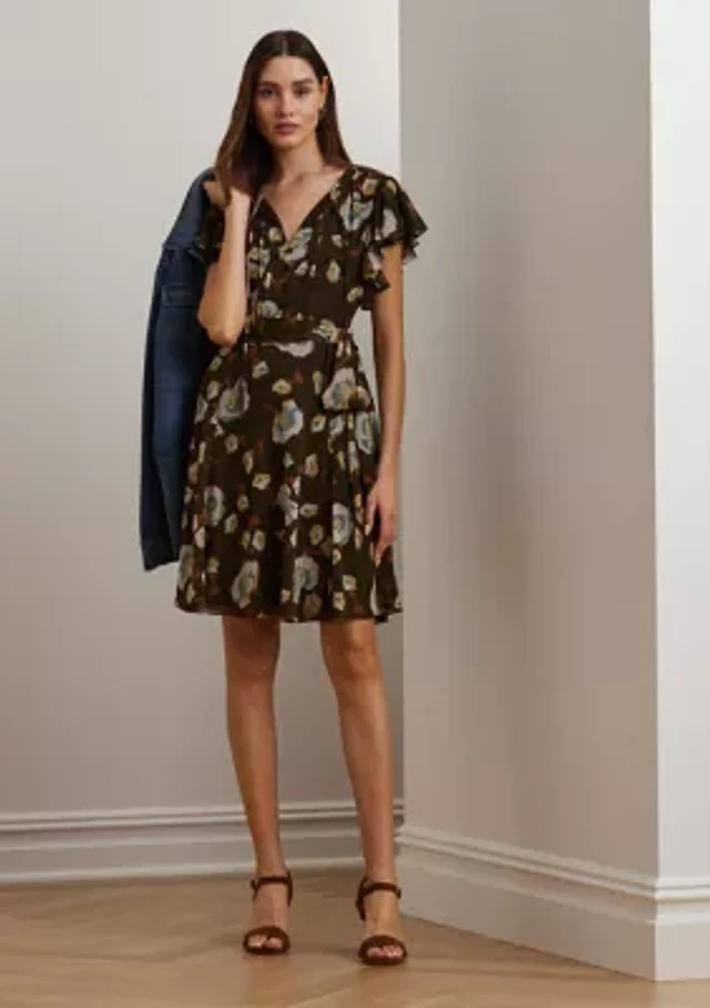 Ignite Evenings Petite Size Floral Print Flutter Sleeve Dress