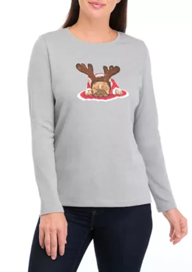Holiday Lane Womens Embroidered Dog Graphic Sweater Macys Exclusive