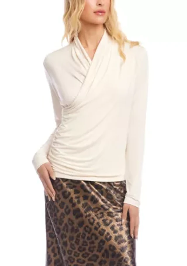 Karen Kane Long Sleeve Metallic Crossover Side-Shirred Top