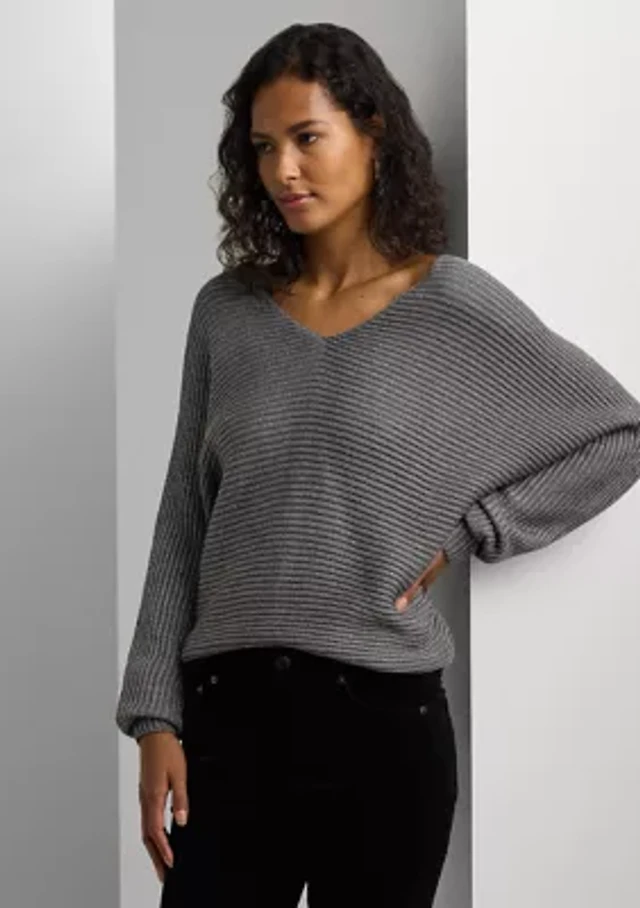 Petite Rib-Knit Dolman-Sleeve Sweater