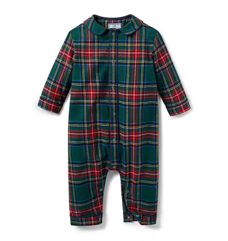 Ring in the season with a festive new plaid that's brimming with holiday cheer. The Kensington Tartan puts a colorful spin on a classic design, ideal for cozy nights in as you watch the snow fall. Our Romper is made of the softest brushed twill which will allow your little one to walk, crawl, or relax in comfort. Cotton twill Flame-retardant Peter Pan collar Snap button along front and crotch Long Sleeves Excluded From All Promotions And Coupons This product cannot be returned at Janie and Jack stores.