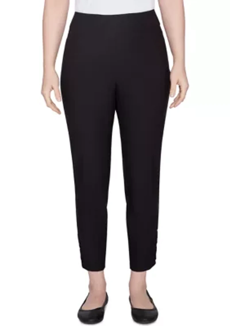 Classic, versatile and casually elegant. Ruby Rd's tech ankle pants feature pull-on ease and lovely self-ladder hem detailing. Elastic waistband 2 on-seam pockets Unlined Regular fit Imported Product Specifications 24.5" Inseam Material & Care Rayon, nylon, spandex Hand wash