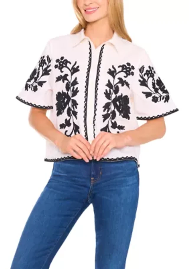 Jm Collection Women's Floral Embroidered Blouse, Macy's Exclusive
