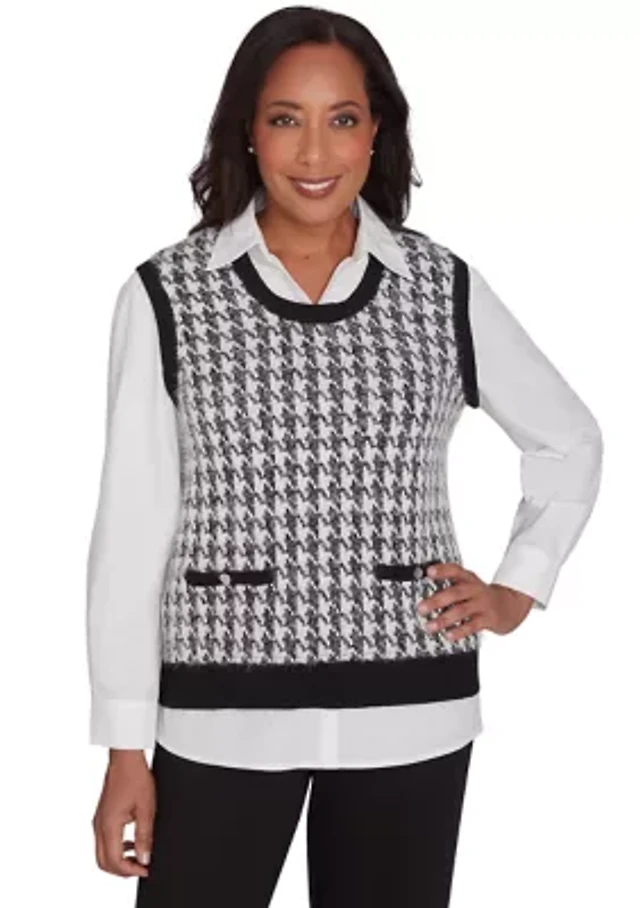 Petite Runway Ready Houndstooth 2Fer Sweater Vest