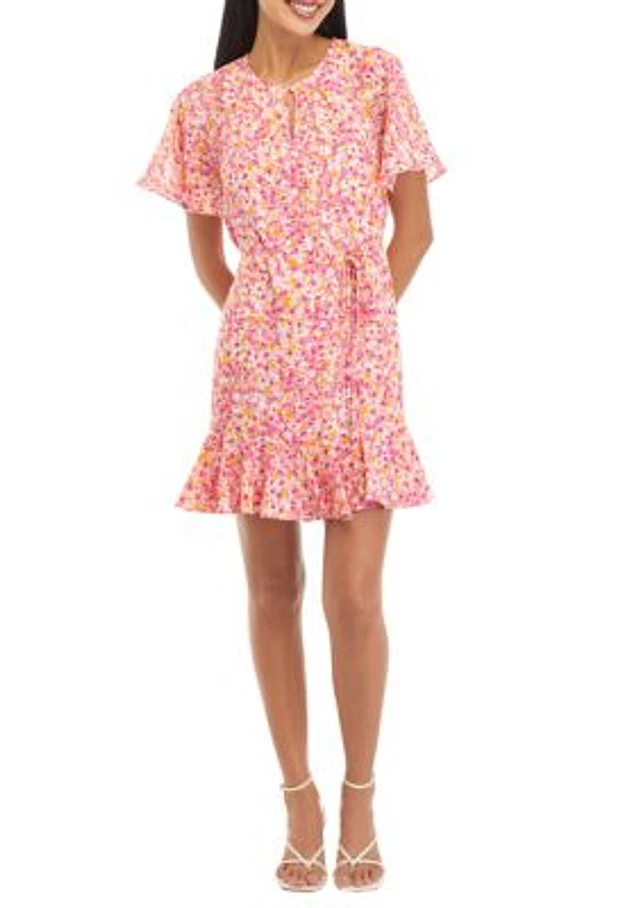 Lilt Big Kid Girls Short Sleeve Flutter Floral Skater Dress