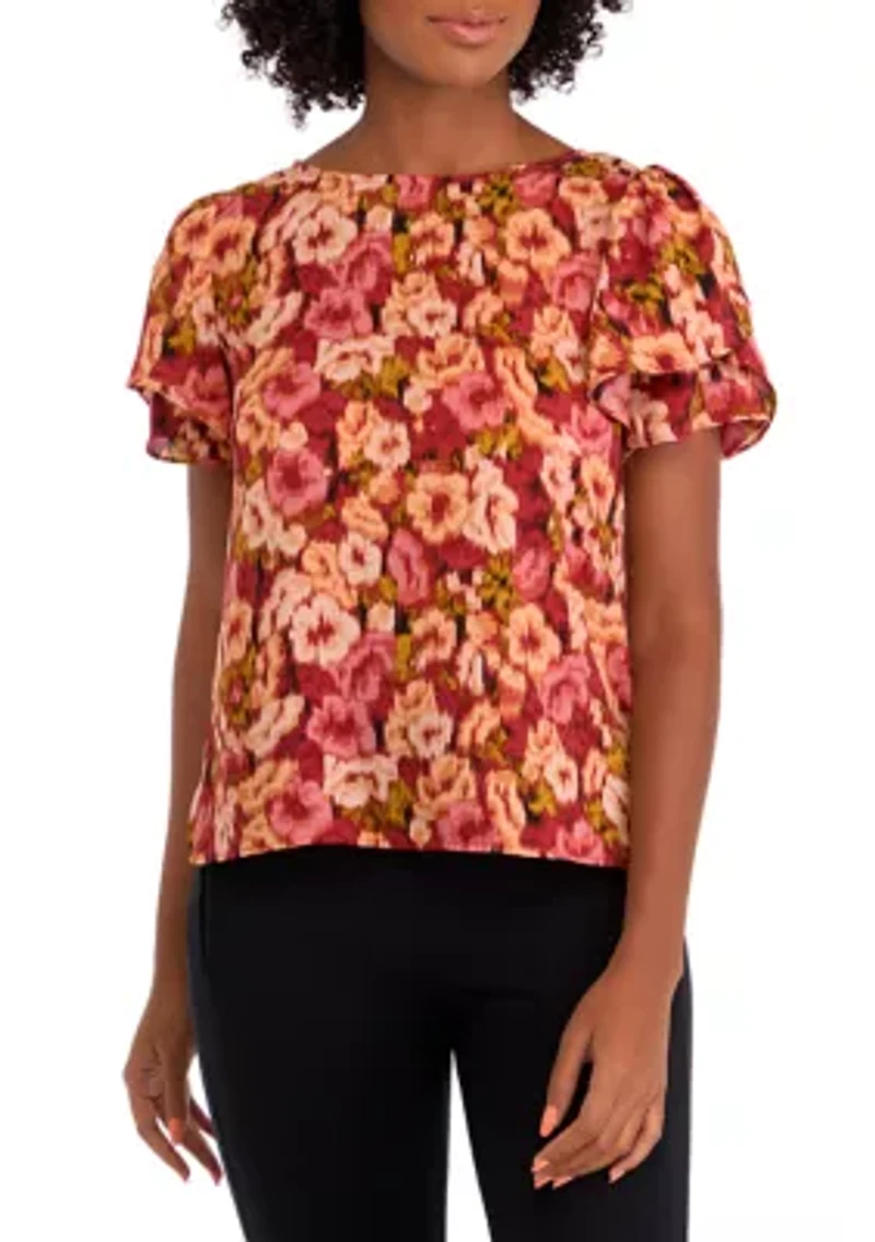 Feminine flutter sleeves bring a hint of romance to this woven top from Vince Camuto. Pullover Crew neck Short flutter sleeves Unlined Imported Product Specifications 23.5" L Material & Care Polyester Machine washable