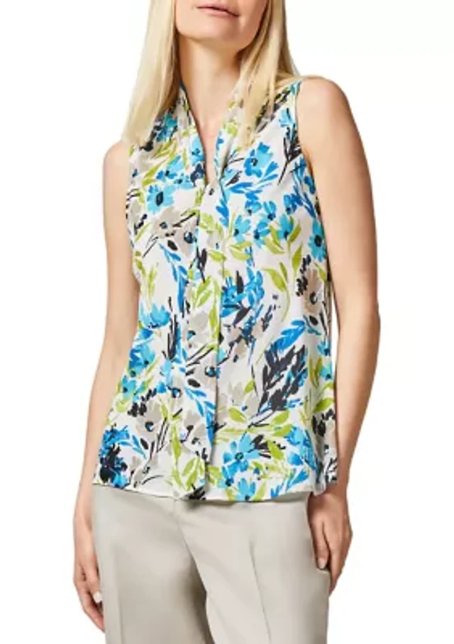 Kasper Women's Floral Sleeveless Tie-Front Blouse