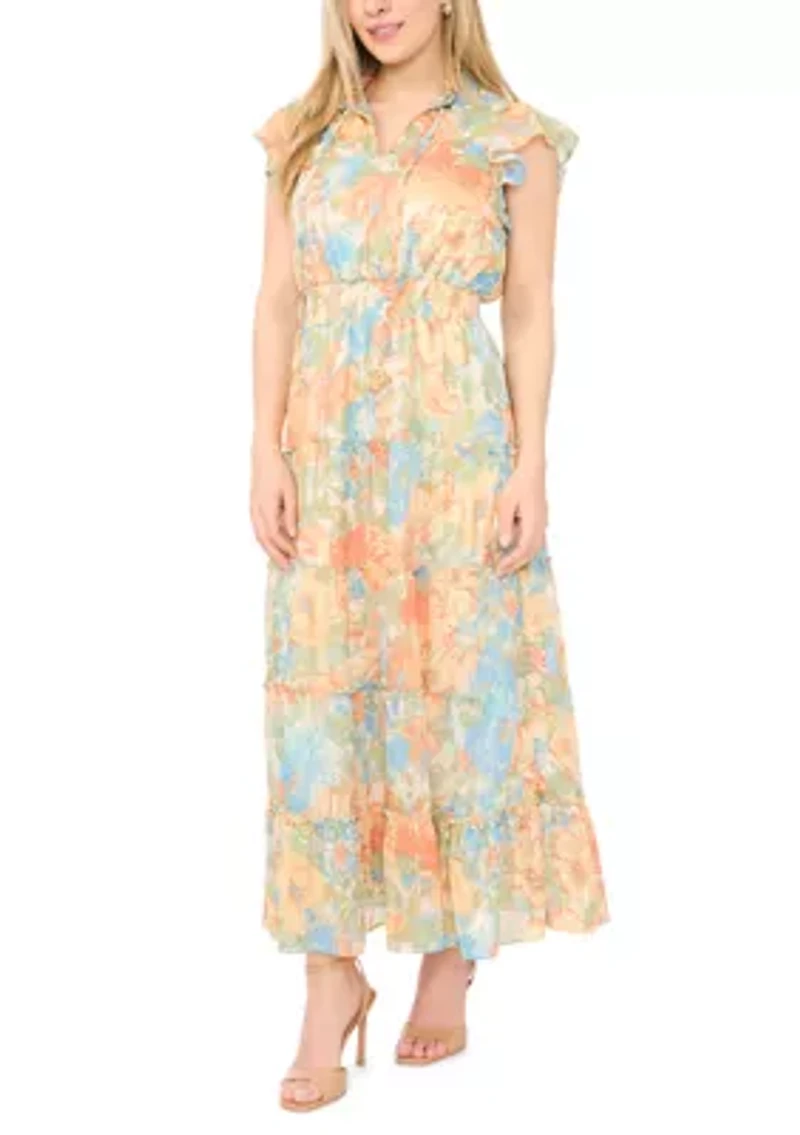 This lovely MSK sundress, with its charming smocked style and tie waist detail, offers a chic look that's perfect for all-day wear. Pullover Tie neck Short fluter sleeves Fully lined Imported Product Specifications 50" L Material & Care Polyester Hand wash