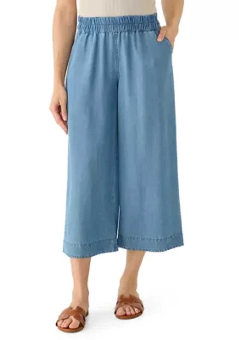Petite Tencel Denim Wide Cropped Leg Pants