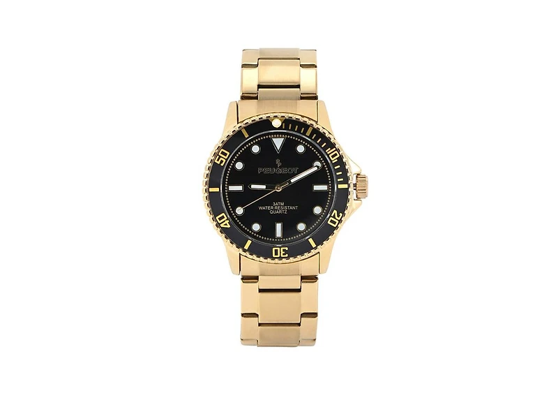 Peugeot Men's 40mm Sport Watch with Rotating Bezel-Stainless Steel Gold Bracelet