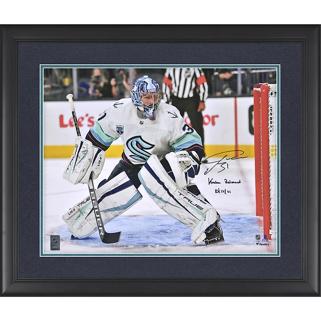 Philipp Grubauer Seattle Kraken Autographed Framed 16" x 20" First Game vs. Vegas Golden Knights Photograph with "Kraken Released 10/12/21" Inscription