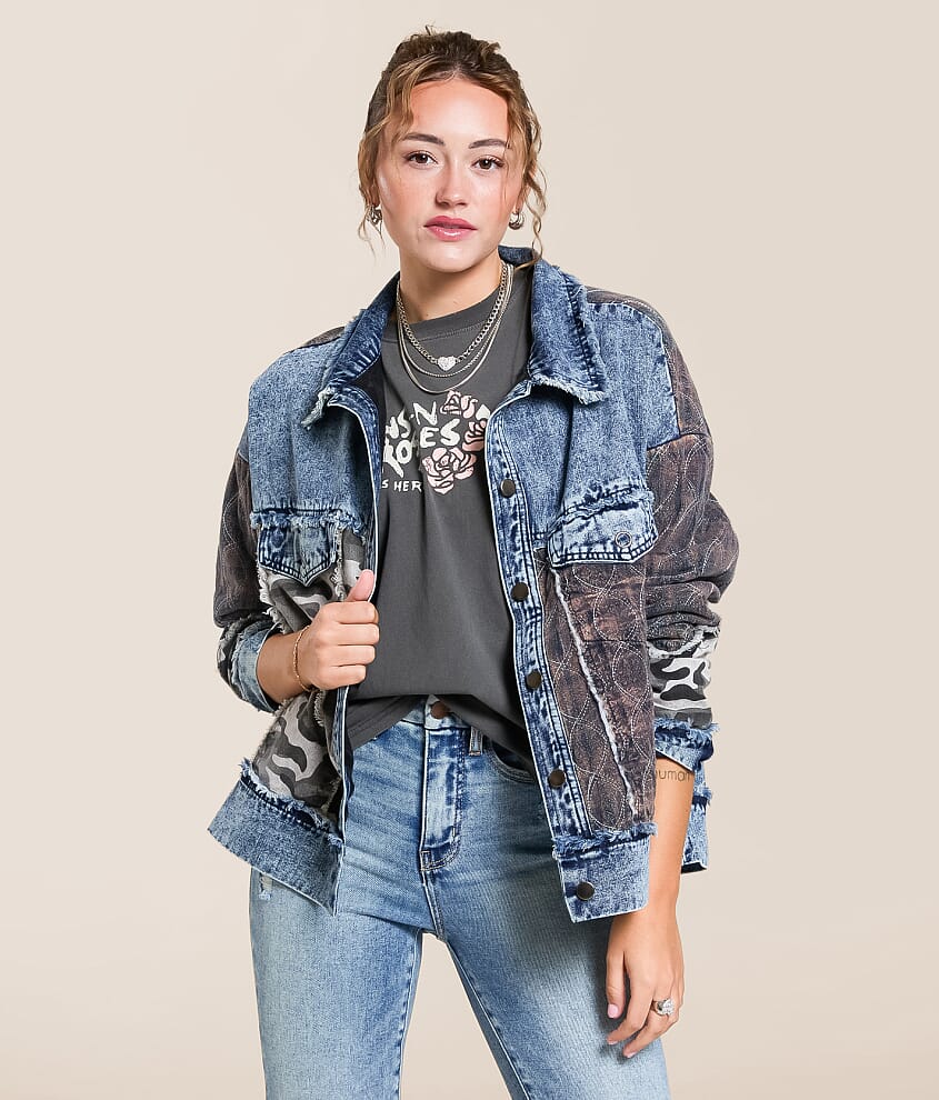 Washed button down lined jacket Bust measures 46" on size small Body length 23" on size small
