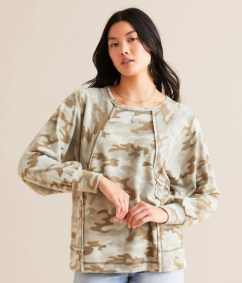 Pieced Camo Print Top