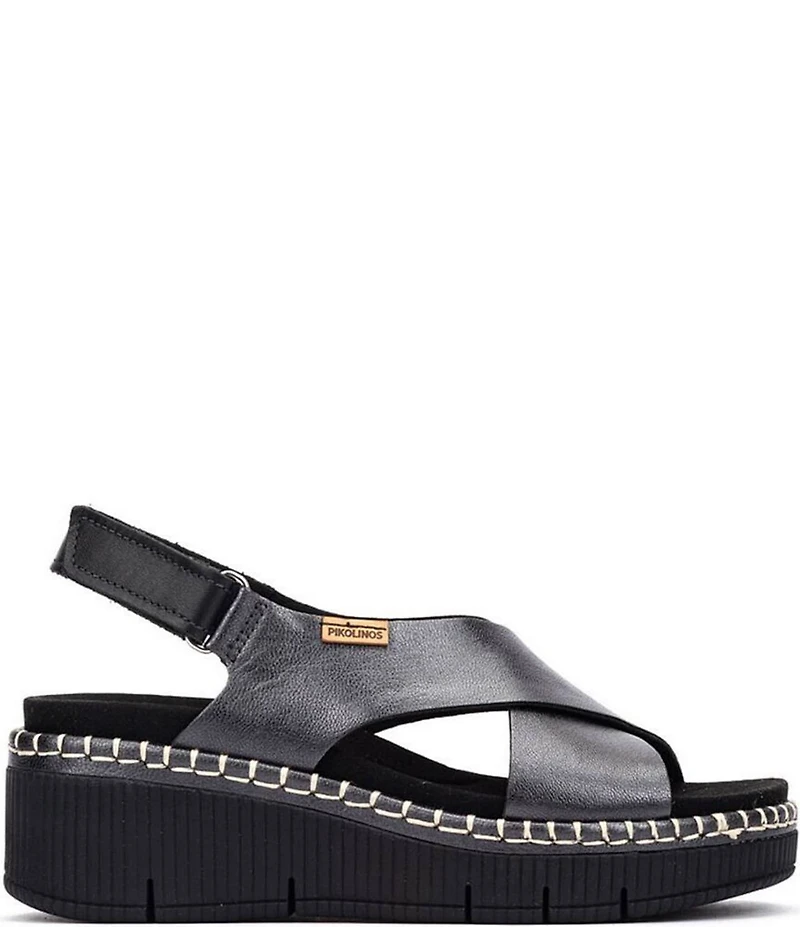 Pikolinos Gomera Leather Platform Wedge Cross Band Slingback Sandals