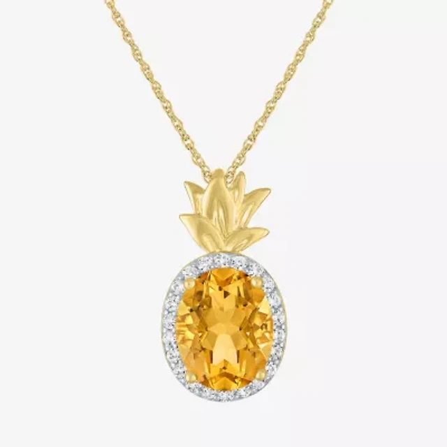 Pineapple Womens Lab Created Yellow Citrine 14K Gold Over Silver 16 Inch Pendant Necklace