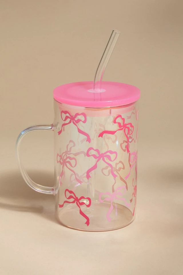 Pink Bow Pattern 15oz Glass With Handle