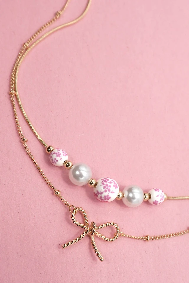 Pearl Bow Layered Necklace