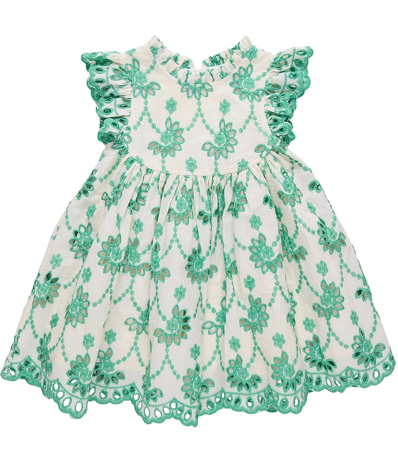 Pink Chicken Little Girls Cynthia Eyelet Cotton Ruffle Neck Flutter Sleeve Scallop Hem Dress