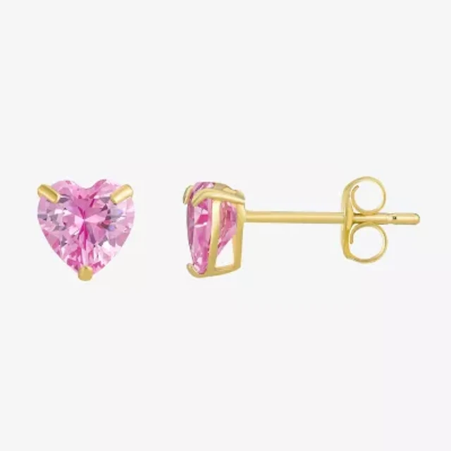 Pink Cubic Zirconia 10K Gold 6mm Heart Stud Earrings
