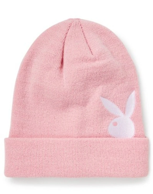 Pink Playboy Rabbit Head Logo Cuff Beanie Hat