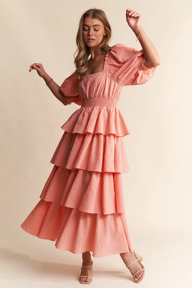 Bustier-Style Chiffon Tiered Ruffle Maxi Dress with Adjustable Straps