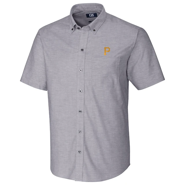 Pittsburgh Pirates Cutter & Buck Short Sleeve Stretch Oxford Button-Down Shirt - Charcoal