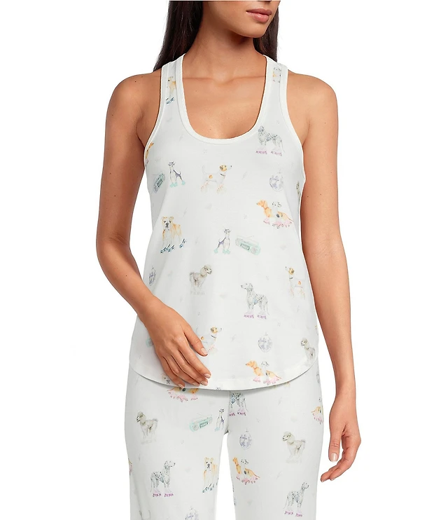 PJ Salvage Disco Dogs Sleeveless Scoop Neck Peachy Knit Coordinating Sleep Top