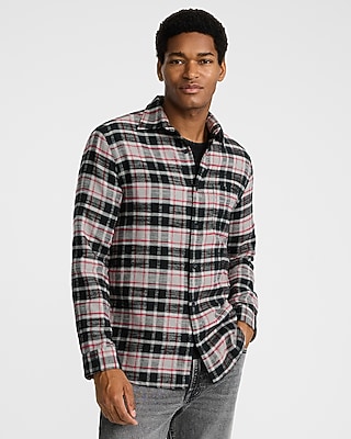 This timeless flannel features a point collar, a full button front, a patch chest pocket, and long sleeves with button cuffs. Perfect for layering this fall season.