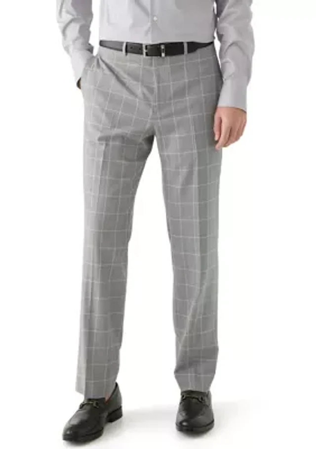 Men's Modern Fit Plainweave Plaid Windowpane Dress Pants