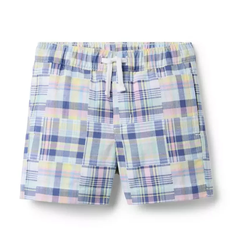 Stitch together a standout spring with our patchwork plaid short. Designed in breezy cotton with an easy-pull-on silhouette. 100% Cotton Elasticized Waist Functional Drawstring Front And Back Pockets Now Including Tween Sizes Up To 16 Machine Washable; Imported