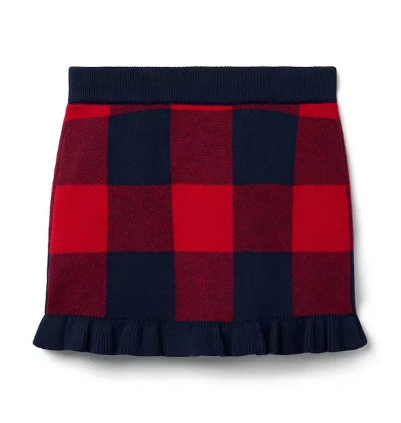 Keep style in check with our soft sweater skirt. Featuring a holiday-ready plaid with a ruffle hem, just for the frill of it. 55% Combed Cotton/25% Rayon/20% Nylon Elasticized Waist Now Including Tween Sizes Up To 16 Machine Wash, Inside Out, Gentle Cycle; Imported