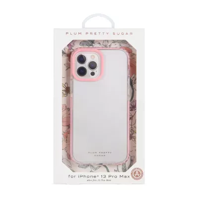 Plum Pretty Sugar bumper reinforced phone case with a light pink bumper brings a pop of color on a clear case to protect your smartphone. This model fits your 12/13 pro max phone
