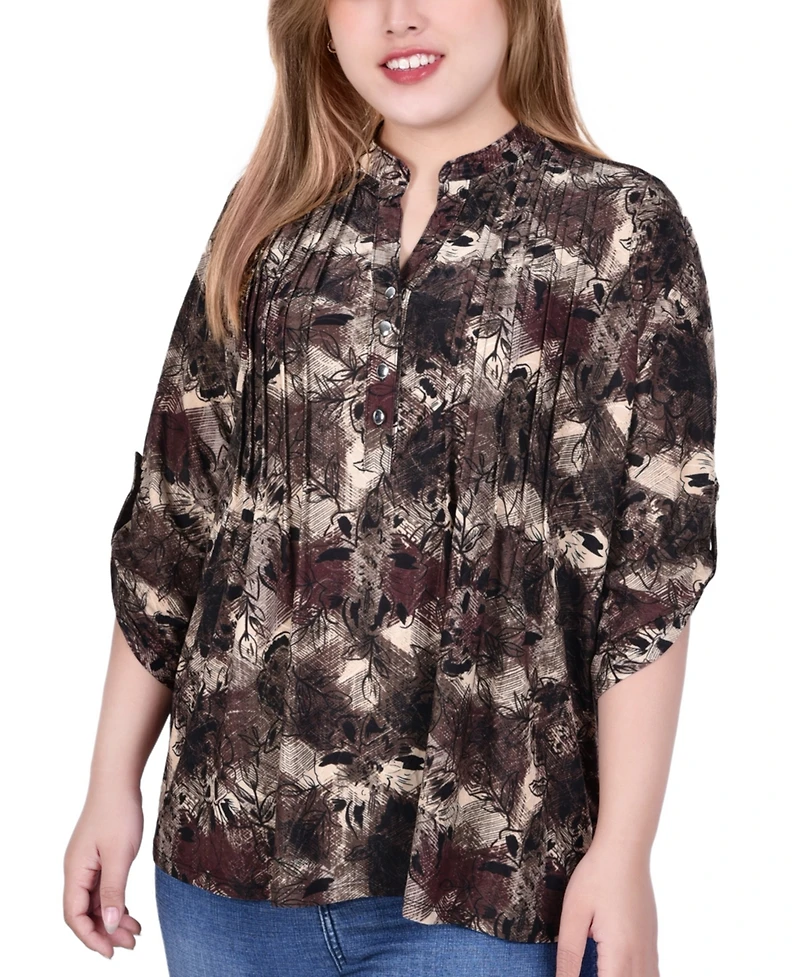 Plus 3/4 Roll Tab Sleeve Y-Neck Top
