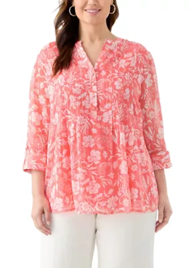 Style & Co Plus Printed Henley 3/4-Sleeve Top, Macy's Exclusive