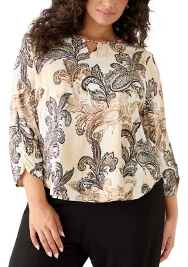 Plus 3/4 Sleeve Paisley Texture Knit BlousePlus 3/4 Sleeve Paisley Texture Knit BlousePlus 3/4 Sleeve Paisley Texture Knit BlousePlus 3/4 Sleeve Paisley Texture Knit BlousePlus 3/4 Sleeve Paisley Texture Knit Blouse