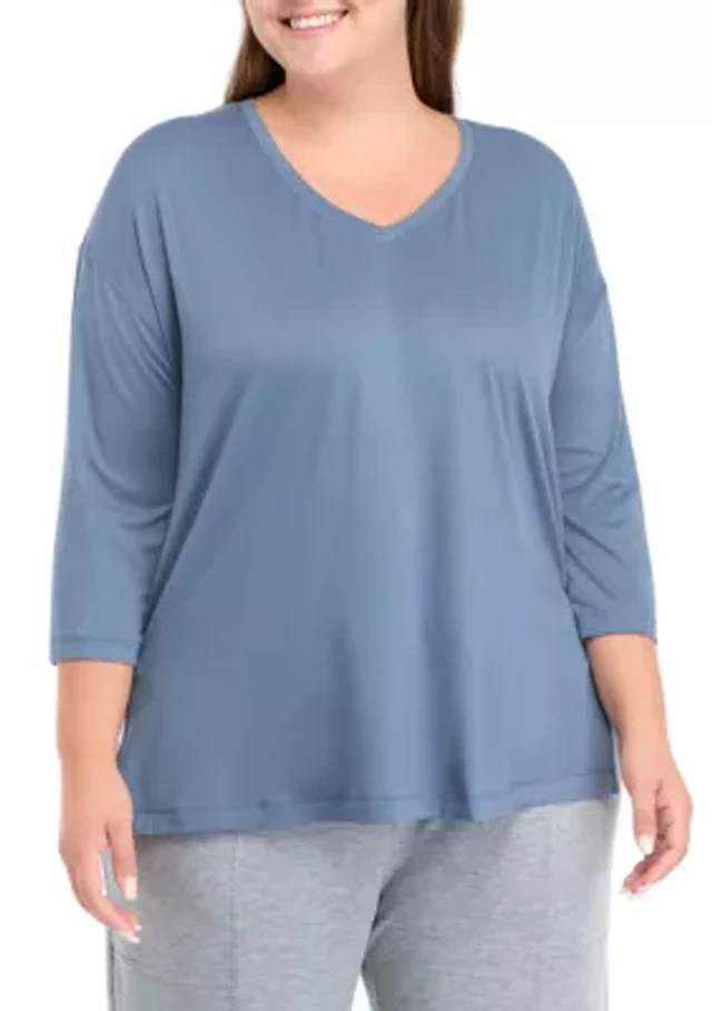Plus 3/4 Sleeve V-Neck T-Shirt