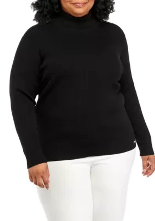 Plus Button Shoulder Ribbed Turtleneck Sweater