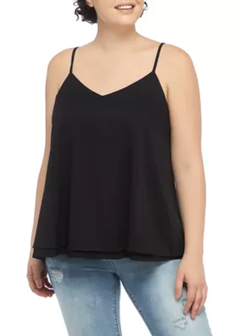 A lovely layered look effortlessly enhances the simple silhouette of this swing cami from Crown & Ivy™. Pullover V-neck Sleeveless Imported Belk Exclusive Product Specifications 28 in Length Material & Care Rayon, spandex Machine washable