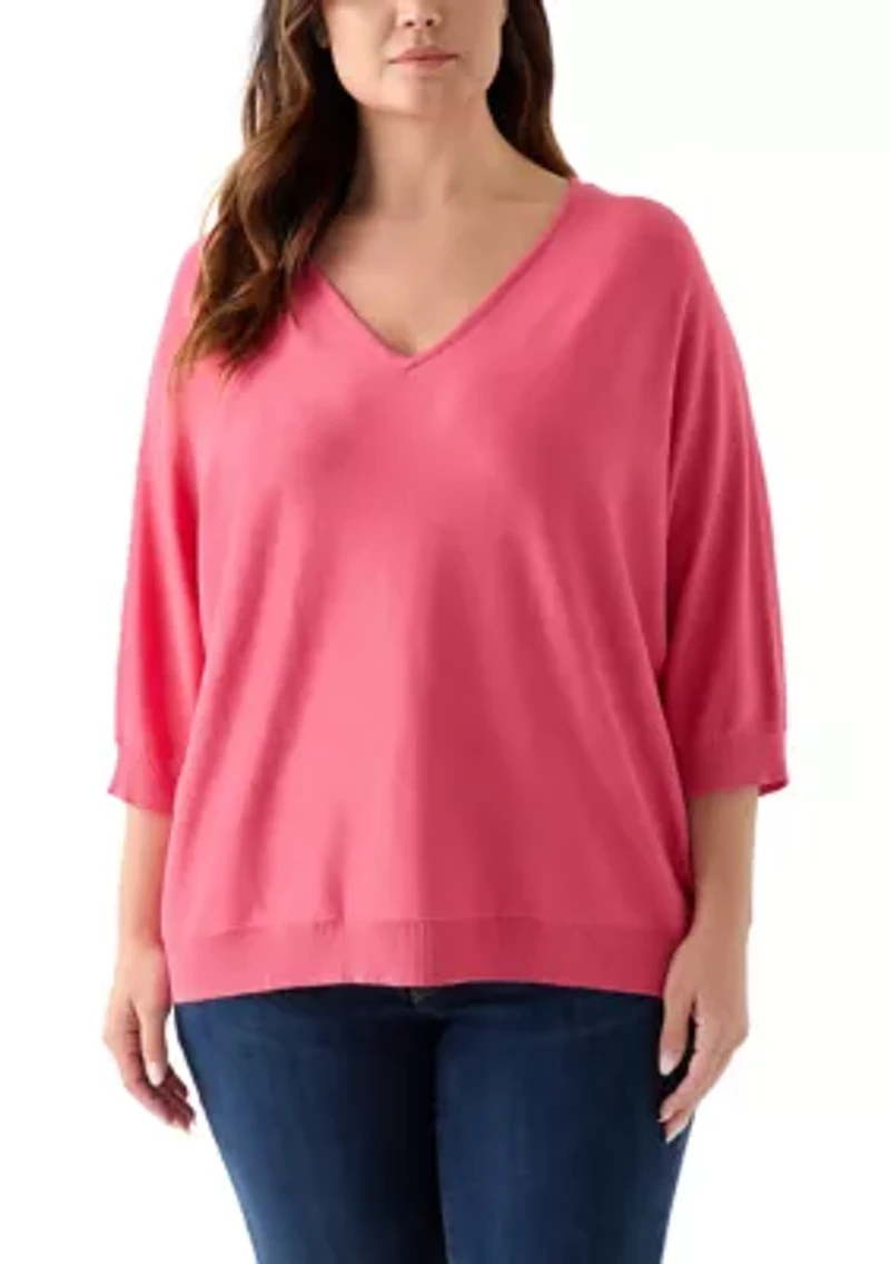 Enjoy effortless comfort with this top from Philosophy. Crafted from soft, cozy knit fabric, this top features elbow-length sleeves and a relaxed silhouette for easy layering or standalone wear. Perfect for casual outings or everyday comfort, it’s a versatile addition to any wardrobe. Pullover V-neck Elbow dolman sleeves Unlined Imported Product Specifications 26.25" L Material & Care Rayon, nylon Machine washable