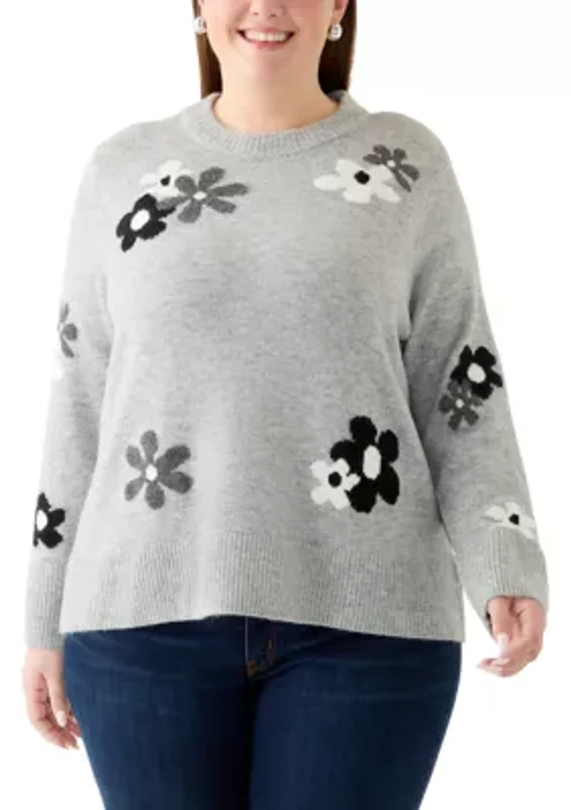 Plus Floral Crew Neck Sweater