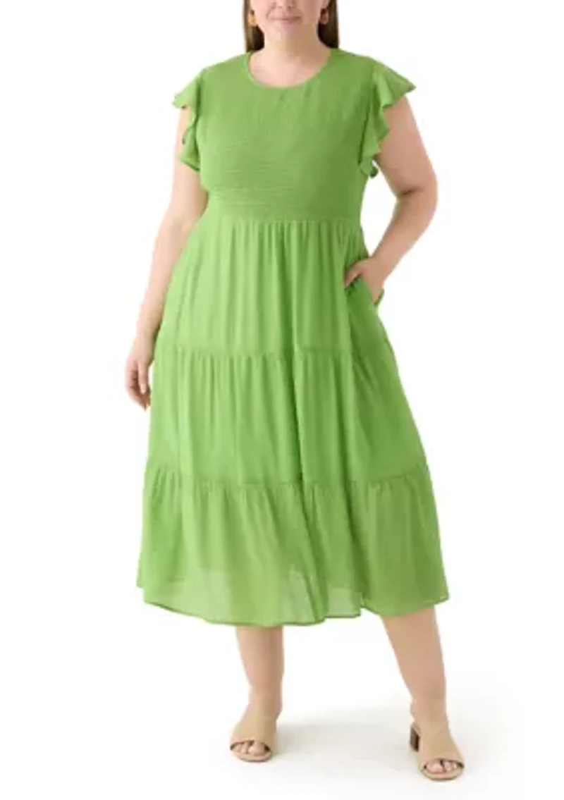 Plus Flutter Sleeve Smocked Fit and Flare Dress