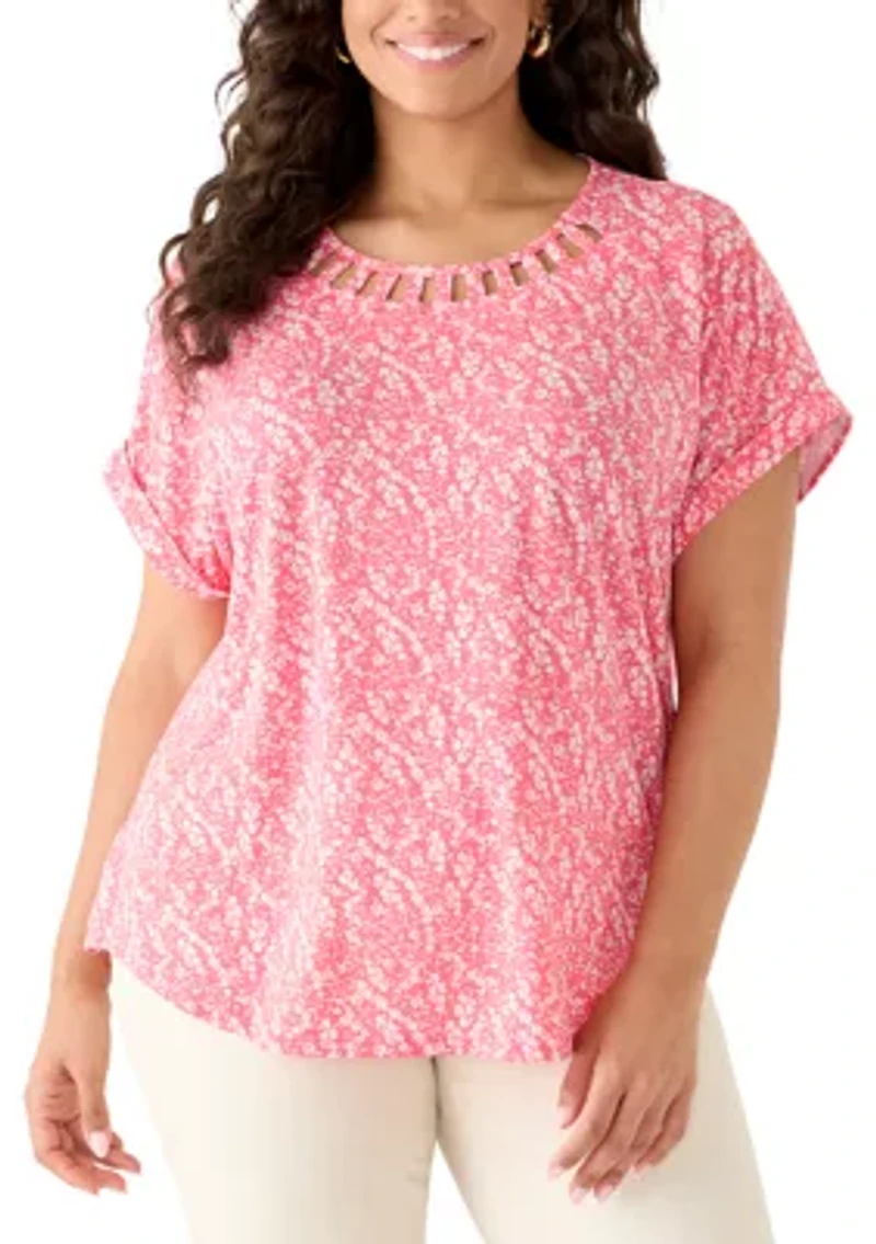 Plus Lattice Neck T-Shirt