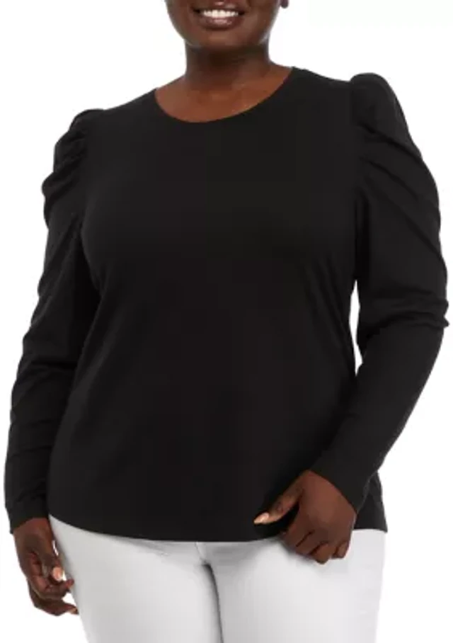 Plus Long Sleeve Pleated Shoulder T-Shirt