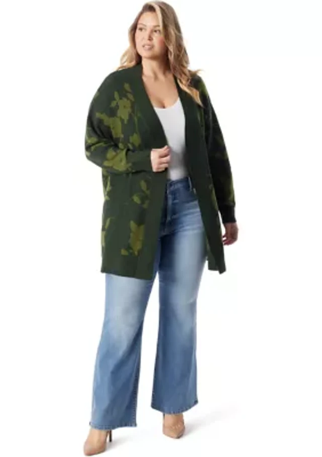 Plus Open-Front Pointelle-Trim Cardigan Sweater