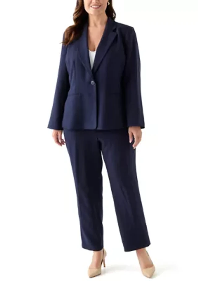 Kasper Plus Size Stretch Crepe One Button Jacket Tie Front Blouse Pants