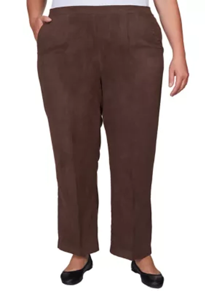 Perfectly paired with your favorite blouse, these pants from Alfred Dunner are a great choice for going out to dinner with friends. Elastic waistband Unlined Straight leg Imported Product Specifications 27.5" Inseam Material & Care Polyester Machine washable