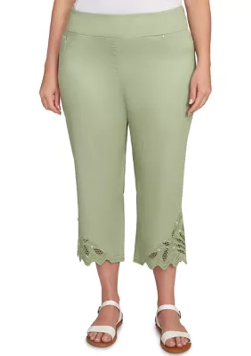 Plus Pull On Soft Denim Lace Inset Capri Pants in Franklin, TN
