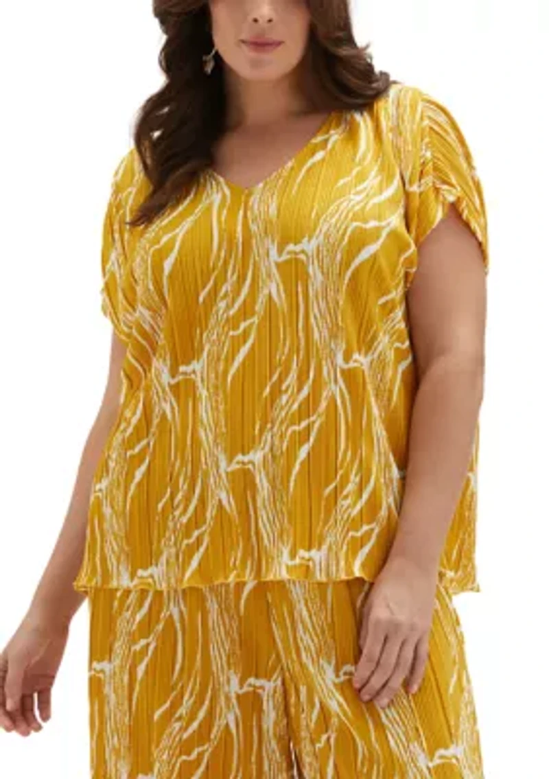 Plus Ripple Print V-Neck Plisse Short Sleeve Top in Franklin, TN