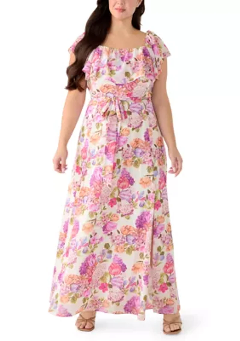 Plus Ruffle Sleeve Floral Maxi Dress